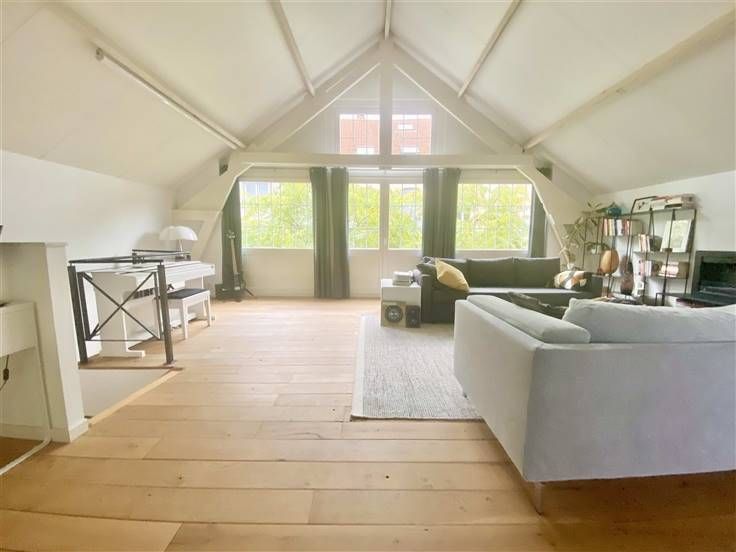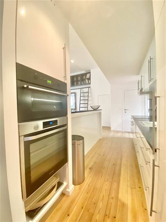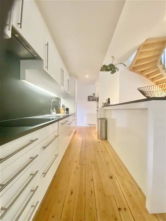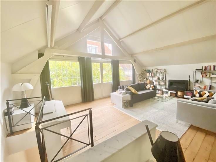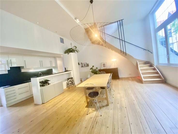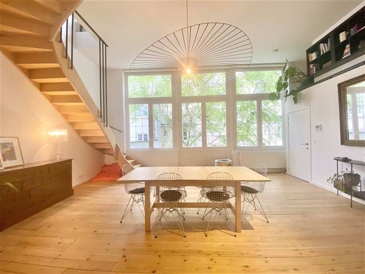 Beschrijving: vlakbij de Sint-Bernhardstraat en niet ver van het Stéphanieplein, ongemeubelde prachtige duplex in loftstijl, gelegen in een volledig gerenoveerd achterhuis. rustig, met een oppervlakte van 160m2. Een bijzonder pand met zeer mooie lichtinval. Samenstelling: Eerste niveau: Grote ontvangstruimte van 35m2 met volledig ingerichte open keuken, apart toilet, 2 slaapkamers van 10m2 met mezzanine van 10m2 en communicerende doucheruimte. Tweede niveau: tweede woonkamer 55m2, apart toilet, ouderslaapkamer van 15m2 met aangrenzende badkamer. Mooie vloeren, kelder en terras 25m2. Mogelijkheid tot huren van een garage voor 100 euro per maand.