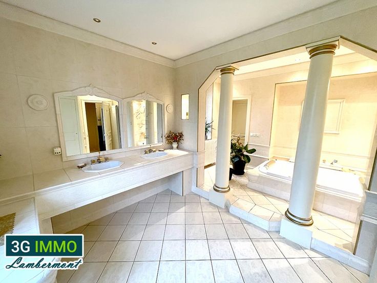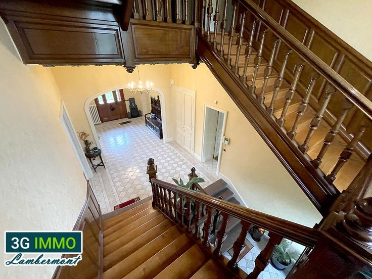 3G Immo Lambermont vous présente à Piennes à 30 minutes d'Esch-Belval (bus toutes les heures vers le Luxembourg de 5h à 23h), une splendide maison de Maître entièrement rénovée avec ses plafonds à 3,40m, ses parquets chêne et moulures et son superbe escalier central en chêne... Cette propriété dispose d'une surface habitable d'environ 432m² avec 6 chambres ou plus (+ plus 130m² de sous-sol et 1 garage), le tout implanté dans un parc d'un hectare (terrain constructible). La demeure, totalement rénovée, érigée dans les années 20 se compose au rez-de-chaussée d'un spacieux hall d'entrée, d'un magnifique salon (44m² avec sa cheminée Jomont), d'une cuisine équipée, de deux salles à manger (19,7m² et 28,7m²) et d'un Wc. Au second étage (sur dalle) se trouvent 2 chambres (19 et 20m²) et 2 dressings (7,6 et 13,9m²), une salle de bain (baignoire balnéo 2 places), une salle d'eau et d'un Wc séparé. A noter que la chambre principale donne accès à une terrasse de 32m² du plus effet. Au dernier niveau, toujours sur dalle, nous retrouvons 4 chambres (12 / 14,4 / 20 et 29m²), une salle de bain et un Wc séparé. Le sous-sol, complètement carrelé et isolé comprend une cuisine d'été, une salle de sport, un débarras, une chaufferie et une buanderie. Parc d'un hectare plat, entièrement clôturé sans vis-à-vis avec de belles parties pelouse et arborées. Au niveau technique tout a été rénové entre 2000 et 2010 avec des matériaux et artisans de qualité (tout à l'égout, plomberie, électricité, SDB,