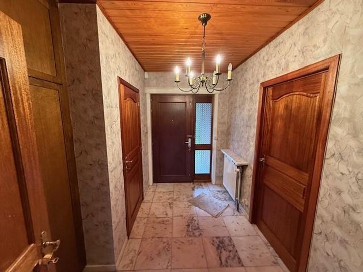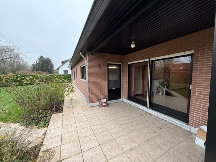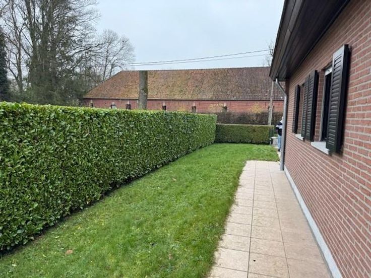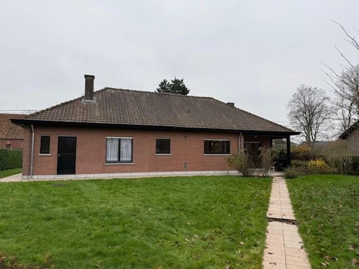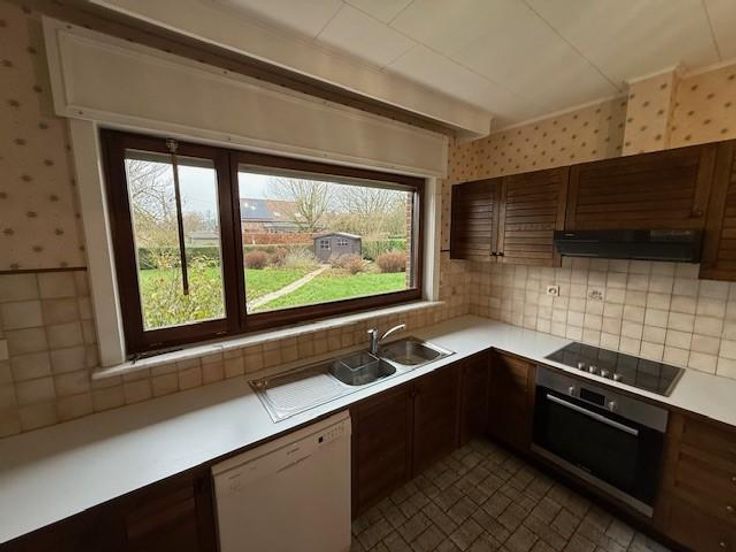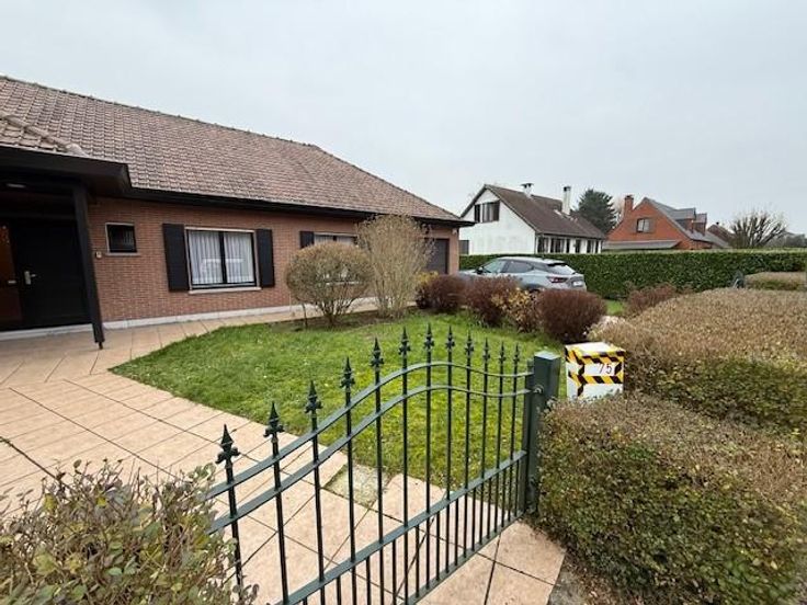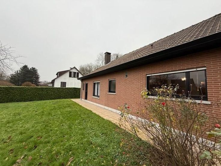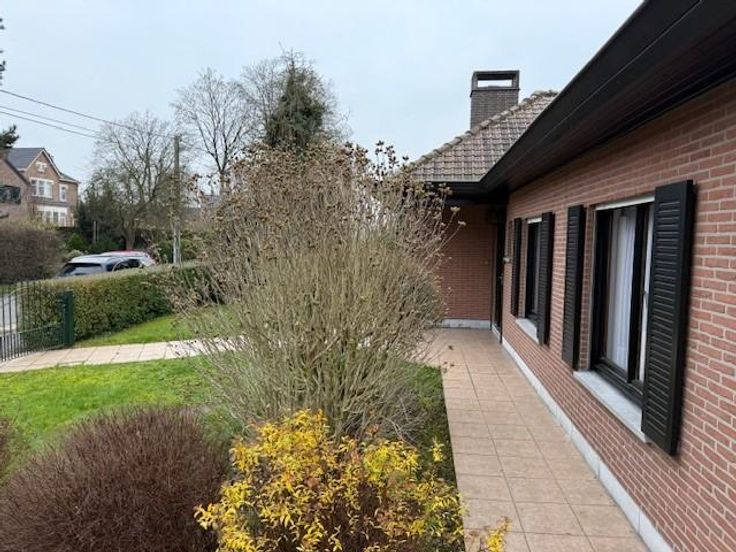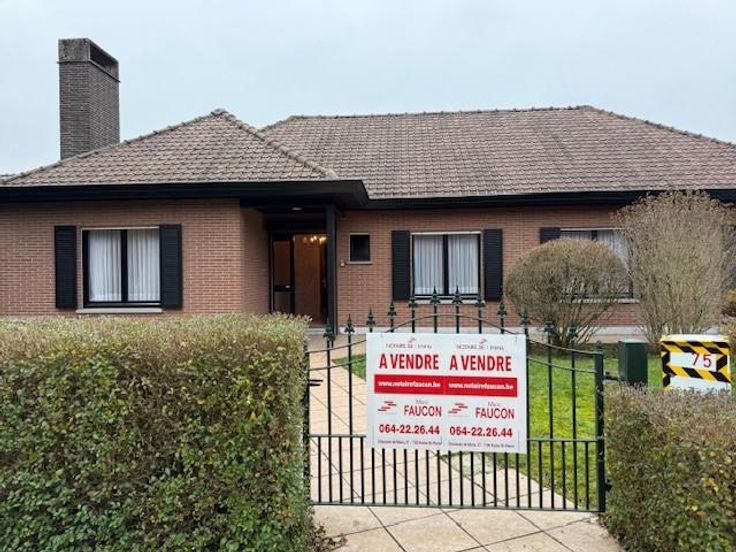 SOIGNIES Chemin du Cornet 75 une villa 4 façades de plein pied spacieuse, tout confort année de construction 1977 superficie de 10 ares RC: 1383 euros PEB et contrôle de l'installation électrique en cours de réalisation comprenant: hall d'entrée avec wc, lavabo et penderie, grand living avec cheminée feu ouvert, cuisine équipée spacieuse, hall de nuit, 3 chambres, un débarras, un garage pour une voiture avec porte électrique, buanderie, terrasse à l'arrière, grand jardin avec châlet, grenier aménageable accessible par trappe. Pas de caves, châssis double vitrage avec volets, chauffage central mazout (chaudière Viesman bien entretenue), cuve à mazout (- de 3000 litres enterrée), citerne eau de pluie, raccordement: eau, électricité, égout, pa à partir de 395.000 euros. Visites: renseignement en l'étude.