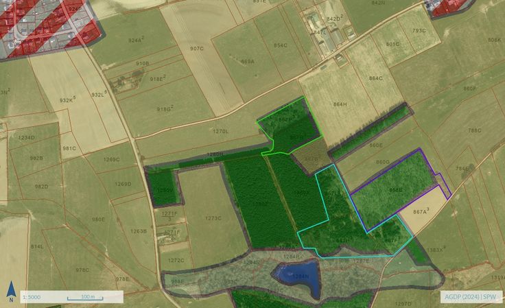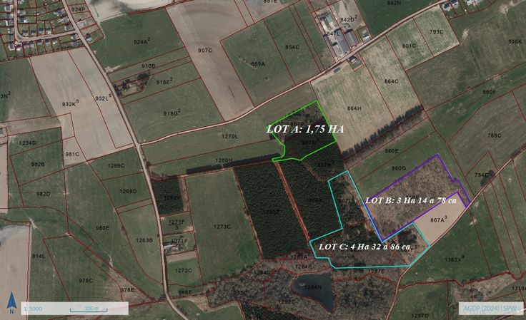 cet ensemble est accessible facilement par un bon chemin empierré sur 200 m . Il s'agit d'un peuplement de feuillus et en partie une ancienne culture de sapin de noël en mélange avec du feuillus. Les épicéas pourraient être dépressés. Les bois résineux sur la parcelle n° 867 R3 ne font pas partie de la vente et seront coupés. GSM: 0479/51.36.50