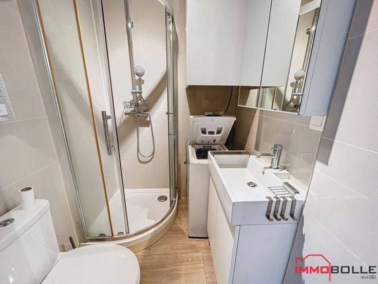 A proximité de la Gare du Luxembourg, de la Place Fernand Cocq et de toutes les facilités, beau studio lumineux de 30m² (selon CPEB) + terrasse de 15m² situé au 1er étage d'un immeuble de 5 étages (avec ascenseur). Le studio se compose d'un hall d'entrée, d'un séjour de 10m² + coin à dormir de 5m², d'une cuisine USA équipée et d'une salle de douche avec WC. Châssis double vitrage. Electricité conforme. CPEB: E. Libre à l'acte.