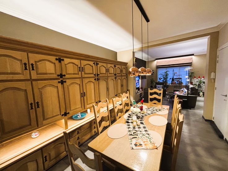 L'agence Immo service a le plaisir de vous faire découvrir cette belle maison alliant charme, confort et modernité, idéale pour une famille, située dans un quartier calme et recherché. Ce bien se compose : D'un Rez-de-chaussée qui se compose comme suit : Un spacieux hall d’entrée avec WC séparé et lavabo, desservant un salon lumineux et une salle à manger conviviale. Vous y trouverez également une cuisine ouverte entièrement équipée. A l' étage : Un hall de nuit desservant trois chambres confortables équipées de domotique pour un contrôle personnalisé de l’éclairage. La salle de bain moderne dispose d’un système audio intégré (HIFI) pour profiter de votre musique préférée dans un cadre relaxant. Au sous-sol : Une cave pratique pour le rangement et une pièce aménagée pouvant servir de bureau, salle de jeux ou espace de loisirs. Pour l'extérieur : Une vaste cour aménagée sur deux niveaux, offrant de multiples possibilités, ainsi qu’un grand jardin verdoyant pour des moments en plein air. Cette maison combine fonctionnalité, équipements modernes et un extérieur généreux, idéale pour les moments en famille ou entre amis. D'un point vue technique : Châssis double vitrage, chauffage central au gaz avec chaudière à condensation récente, isolation de 18cm en polystyrène extrudé Ne manquez pas cette opportunité ! Possibilité d'acheter les meubles séparément.