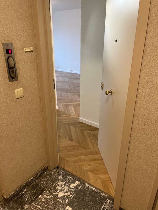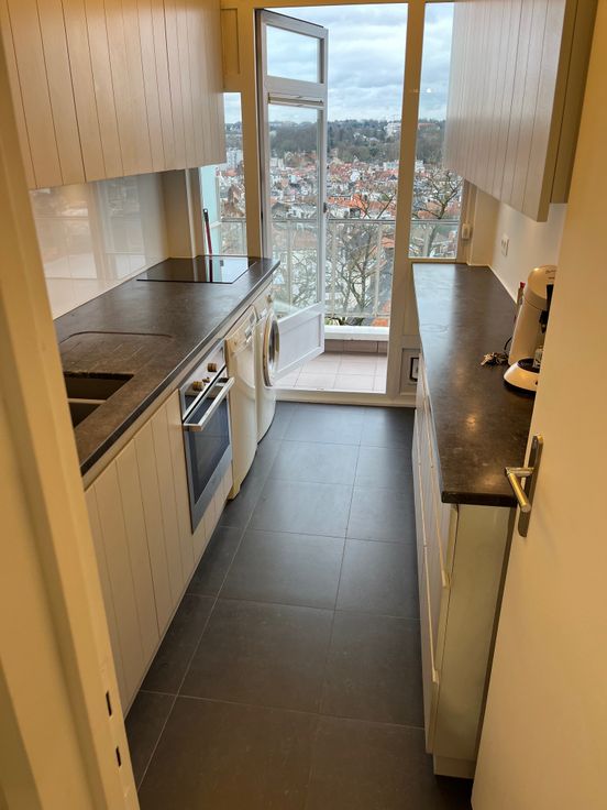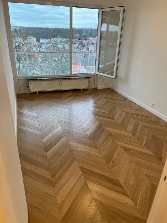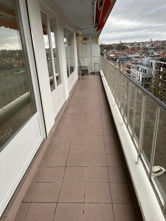 Appartement équipé d’un parquet massif neuf « pointe de Hongrie ». Il se compose d'un hall d'entrée avec porte blindée (±5 m²) donnant accès à la cuisine super équipée (four, lave-vaisselle, machine à laver, frigo et congélateur) (± 10m²), d'un grand séjour / salle à manger de (± 35 m²), de 2 chambres (± 13 m² et ± 10,50 m²), d'une salle de bains, d’un WC séparé, placard de rangement intégrés aux cloisons du hall de nuit et de la SDB, une belle terrasse (± 17,90 m²) donnant une vue imprenable sur Uccle. Cave incluse de (±8 m²) + local vélo. Double vitrage, parquet de qualité et beaux espaces. Charges : 200 €/mois (Provision pour le chauffage, l'eau, l'entretien des parties communes et espaces verts).