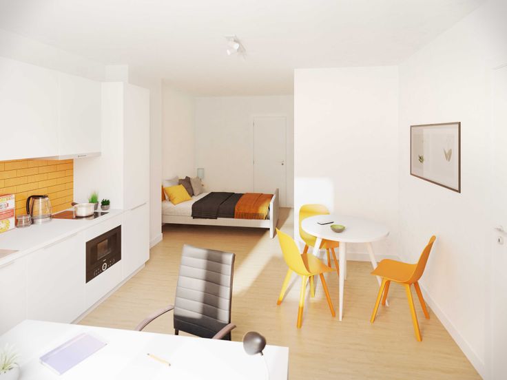 Elke unit beschikt over een parlofoon, een dubbel bed (140x200) , een bureau en bureaustoel, brandvertragende en verduisterende gordijnen en een ontbijthoek met geïntegreerde koelkast en losstaande combi-microgolfoven.