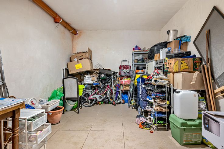 Op het gelijkvloers zijn er drie achter elkaar liggende ruime vertrekken en een apart toilet. Momenteel worden deze gebruikt als living, was berging en opbergruimte. Via de trap gaan we naar de eerste verdieping: hier bevinden zich twee slaapkamers, de badkamer een keuken en de eetkamer.
