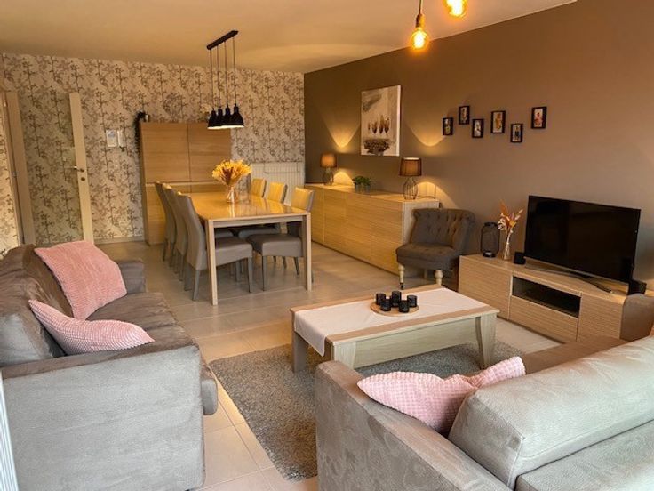 Residentie DE KROON: In volle centrum te Westende-dorp, ruim (84m²) en lichtrijk appartement, gelegen op de 3de verdieping in jonge residentie, bestaande uit : inkomhall met vestiaire, ruime en gezellige woonkamer met salon en eettafel, volledig open en ingerichte keuken, berging, apart toilet, badkamer met ligbad en enkele wastafel, twee slaapkamers telkens met een dubbelbed. Ideaal voor permanente woonst, interessante investering of tweede verblijf in residentiële buurt . Elektrische keuring conform! (Rolstoel) toegankelijk gebouw ! Centrale verwarming op gas. Conforme elektrische keuring en EPC met label A.