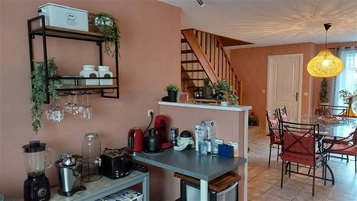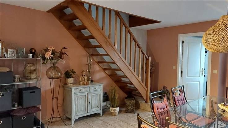 Sorry er is geen nederlandse vertaling beschikbaar. MAISON D’HABITATION composée au rez-de-chaussée d'une salle-à-manger, cuisine équipée et meublée (table de cuisson vitro-céramique, meuble évier, hotte, four et lave-vaisselle) et buanderie. Au 1er étage : hall de jour, salon, 1 chambre ou bureau, salle-de-bain (baignoire, lavabo et toilette). Au 2ème étage : hall de nuit, 2 chambres, et petit grenier. Agréable terrasse carrelée, jardin/pelouse, garage individuel 1 voiture. Chauffage électrique (convecteurs à accumulation), châssis PVC double vitrage, compteur d’électricité bi-horaire, …