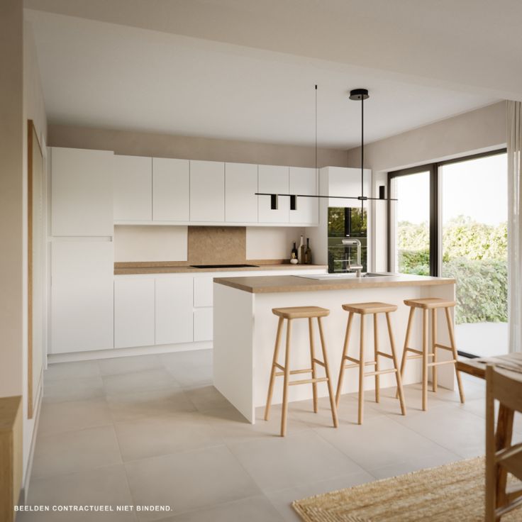 Elke woning beschikt op de gelijkvloerse verdieping over een inkomhal met gastentoilet, een lichtrijke leefruimte en een open keuken.