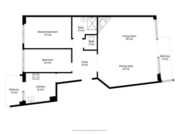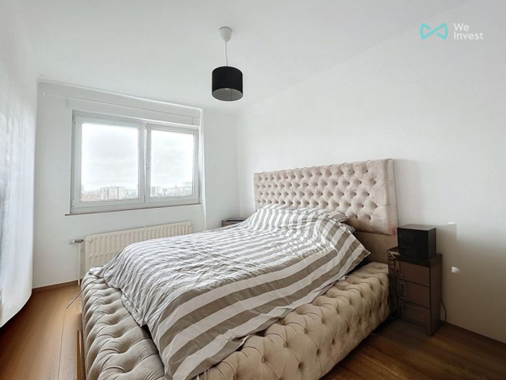 Gelegen op de 7e verdieping van een gebouw met 14 verdiepingen en een lift, bestaat het appartement uit twee slaapkamers, een ruime en lichte woonkamer met toegang tot een balkon, een volledig uitgeruste keuken met eveneens een balkon, een douchekamer en een apart toilet.