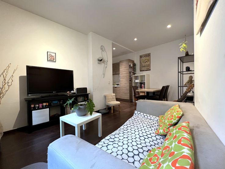 Bruxelles/Place Sainte-Catherine, Rue de Flandre 5, appartement de style loft d'une superficie habitable de +/-55m² se composant d'un salon +/-22m², grande cuisine hyper-équipée (four, taques, hotte, lave-vaisselle, frigo, surgélateur), espace ouvert pour la chambre +/-10m², salle de douches, espace buanderie dans les communs avec machine à laver. Renseignements et visites : 0485/47.77.72 - ab@likehome.be