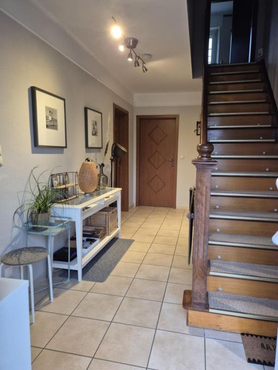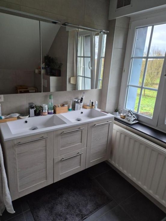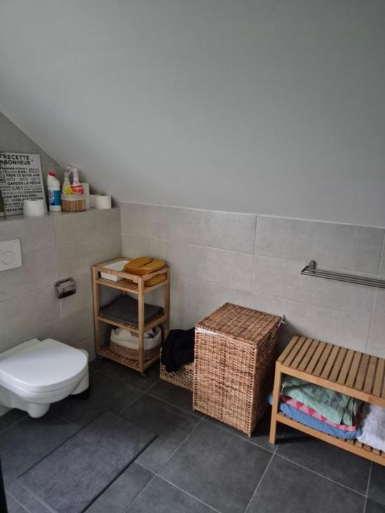 COMPRENANT : AU SOUS-SOL : garage 1 voiture, caves sous tout le bâtiment AU REZ-DE-CHAUSSEE : hall d’entrée, salon – salle à manger avec poêle à bois, cuisine équipée avec coin à manger, bureau ou chambre, salle de bains avec WC. AU 1 ER ETAGE : palier desservant 3 chambres, salle de bains avec WC et débarras. SOUS-TOIT : Grenier Châssis PVC double vitrage avec volets - chauffage central au mazout. Panneaux photovoltaïques – climatisation. Jardin orienté sud avec deux terrasses - Sauna et jacuzzi – robot tondeuse Proximité des grands axes, des écoles et commerces. Contenance totale de 5a 29ca R.C : 582 euros ELECTRICITE CONFORME PEB N° 20161027008700 – Classe F
