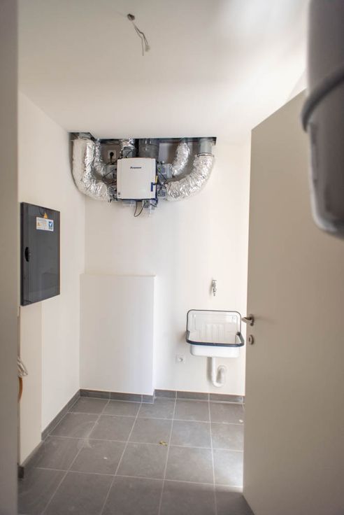 Elektriciteitsmeter met 2-voudig uurtarief, condenserende gaswandketel, zeer laag energieverbruik, toiletspoeling op regenwater (inbegrepen in de kosten). Prijs: 920 euro/maand + 25 euro alg. gemeenschappelijke kosten (onderhoud gemeenschappelijke buitenruimte, toiletspoeling op regenwater, buitenverlichting,......) en 50 euro voor de lift.