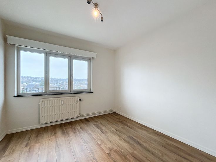 Ce bien se compose comme suit : Un vaste hall d'entrée avec parlophone, un séjour lumineux, une cuisine neuve semi-équipée (lave-vaisselle, four, taques de cuisson, hotte) et avec balcon, 2 belles chambres dont une avec balcon, 1 salle de douche neuve, 1 WC individuel ainsi qu'une cave privative.