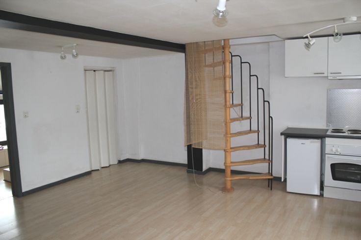 Appartement duplex à quelques minutes de la gare et comprenant une salle de séjour, une cuisine semi équipée (frigo, four, taque électrique et hotte), une salle de douche et une chambre.