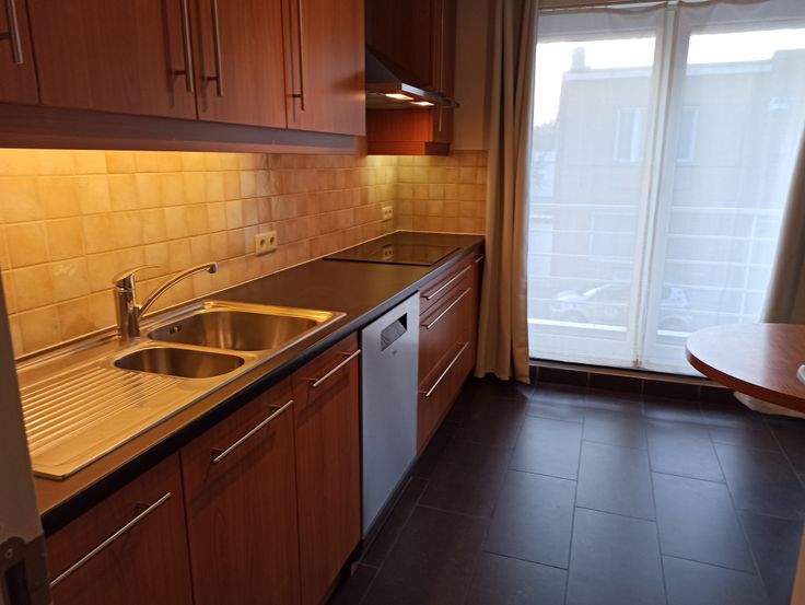 Het appartement heeft een inkomhal met apart gastentoilet. De ruime woonkamer met semie open keuken krijgt dankzij de grote ramen veel natuurlijk licht. De keuken is volledig uitgerust met koelkast, dampkap, inductie koopplaat (met boostfunctie) en vaatwasmachine. Vanuit de keuken is er toegang tot een terras aan straatkant. Er is ook een praktische berging voorzien met vele schabben vloer/plafond waar eventueel ook een kleine diepvriezer kan gezet worden.