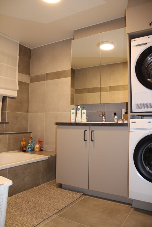 Op de rechterzijde in de eetkamer bevinden zich de toegangsdeuren van een berging en een badkamer, met ligbad, inloopdouche en badmeubel.