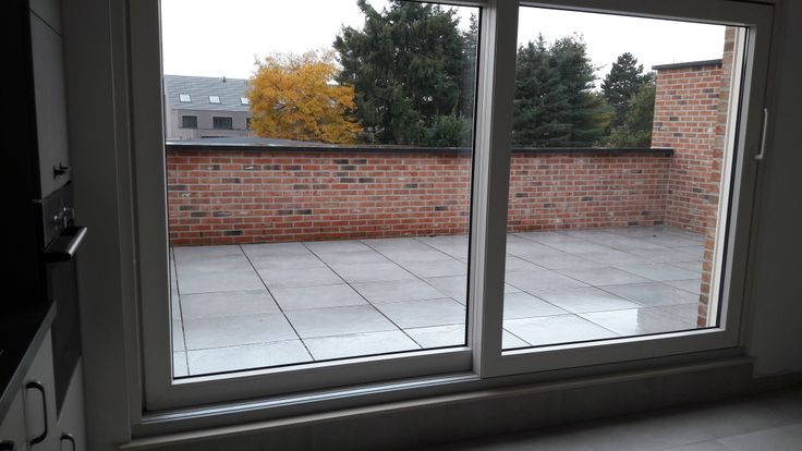 Via de schuifraam recht voor krijgen we toegang tot een zeer ruim terras met goede privacy.