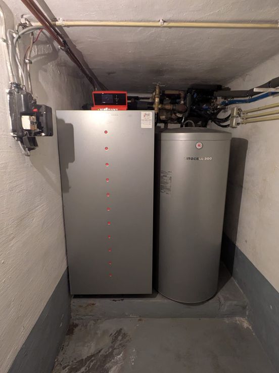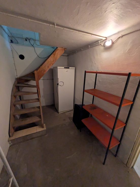Kelder : koele, droge berging en verwarmingsketel (aardgas).