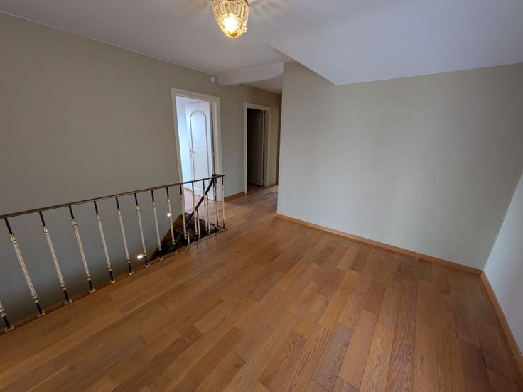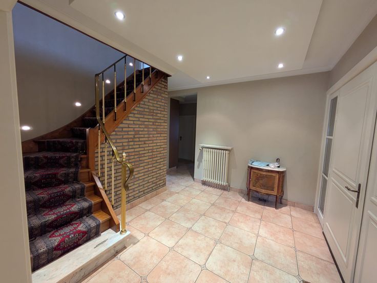 Verdieping : 3 ruime slaapkamers waarvan 2 met wastafel, een apart toilet, ruime berging die kan omgebouwd worden tot badkamer en 2 kleinere bergingen.