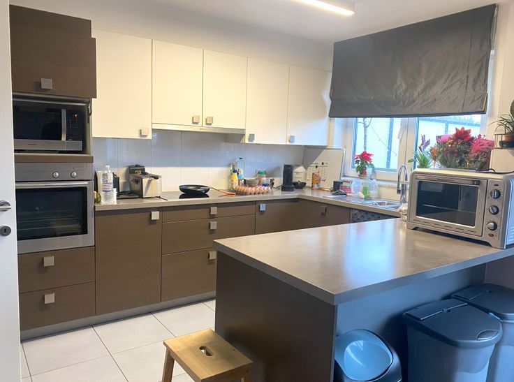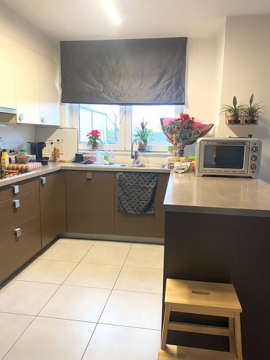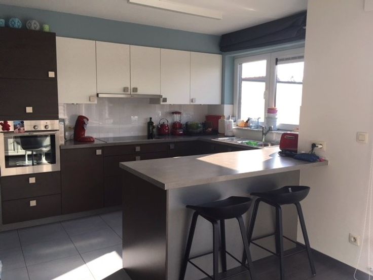 - Moderne open keuken voorzien van hoogwaardige ingebouwde toestellen: koelkast, diepvries, oven, vaatwasser en kookplaat met dampkap