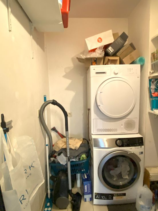 - Praktische berging met aansluiting voor wasmachine en droogkast