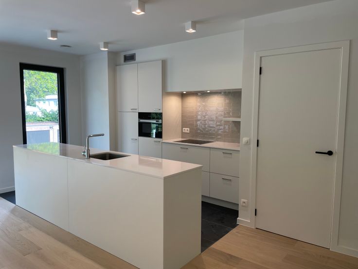 Mooi afgewerkt en lichtrijk nieuwbouwappartement op de 1ste verdieping, bereikbaar via trap of lift. De inkomhal leidt tot een ruime, lichte woonkamer met eiken parketvloer en een geïntegreerde open keuken (op keramische vloertegels) .