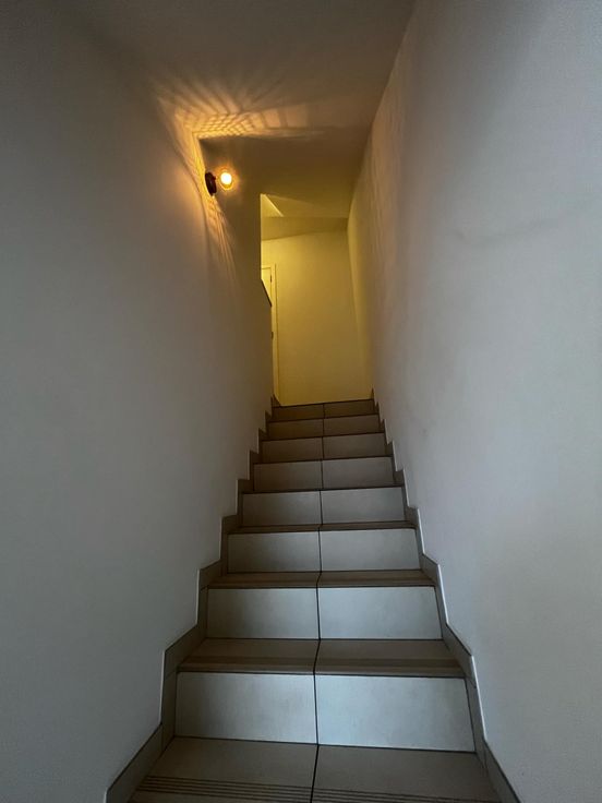 - Au premier étage, un Wc, ainsi qu’un living avec cuisine semi-équipée et une buanderie.