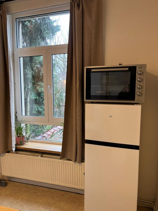 L'espace de vie comprend une cuisine américaine, frigo, petit four, taques électriques, un living avec un sofa/lit, table de travail, une armoire, écran TV, connexion internet. Il existe aussi une salle de douche avec une douche, une toilette et un lavabo. Provision mensuelle de 130 euros pour l'ensemble des charges (eau, gaz, électricité et internet).