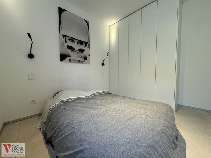 U komt binnen in de inkomhal, die u meteen toegang beidt tot de woonkamer, open keuken, deze ruimte is volledig voorzien van op maat ingemaakte kasten, ruim zonneterras (16m²), badkamer met dubbele lavabo en inloop douche, slaapkamer met ingemaakte kasten.