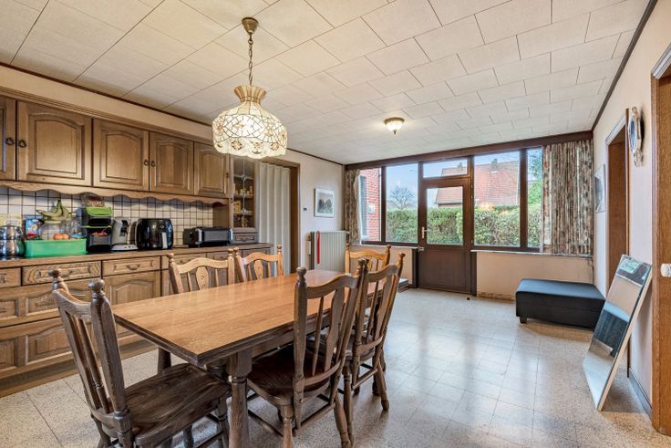 Deze degelijke ruime woning is centraal gelegen langs de Grote Baan. Op wandelafstand van het centrum van Helchteren en op 5 min rijden van de E314 autostrade.  U komt binnen via de hall die toegang geeft tot een gezellige zithoek met openhaard en die toegang geeft tot de ruime eetkamer en living.  De volledig ingerichte grote keuken is toegankelijk vanuit de zithoek of via de achterdeur en is uitgerust met een keramische kookplaat, dampkap, oven, dubbele lavabo, ingebouwde frigo en afwasmachine. Langs de keuken bevindt zich de berging. De badkamer is uitgerust met een bad met douchemogelijkheid, badkamermeubel, lavabo en een toilette. Op het eerste verdiep bevinden zich 3 grote slaapkamers met een zolder op het 2de verdiep. De woning is deels onderkelderd.  Het huis wordt omringd door een prachtig aangelegde tuin met een garage en tuinhuis. De woning is momenteel verhuurd voor 750,- euro per maand. Er is een recht van doorgang naar een aangrenzend perceel.    Renovatieplicht: onbekend
