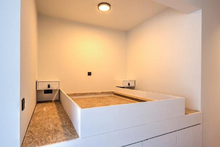 Slaapruimte met plaats voor een dubbel bed, voorzien van ingemaakte kasten
