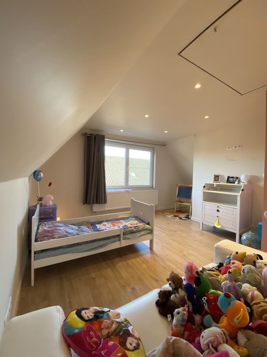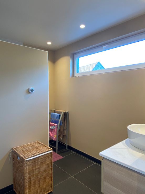 Verder is de woning voorzien van een warmtepompboiler, zonnepanelen, airco op de bovenverdieping, vloerverwarming op aardgas en van een regenwaterput van 10.000L die aangesloten is op de 2 toiletten, wasmachine en buitenkranen.