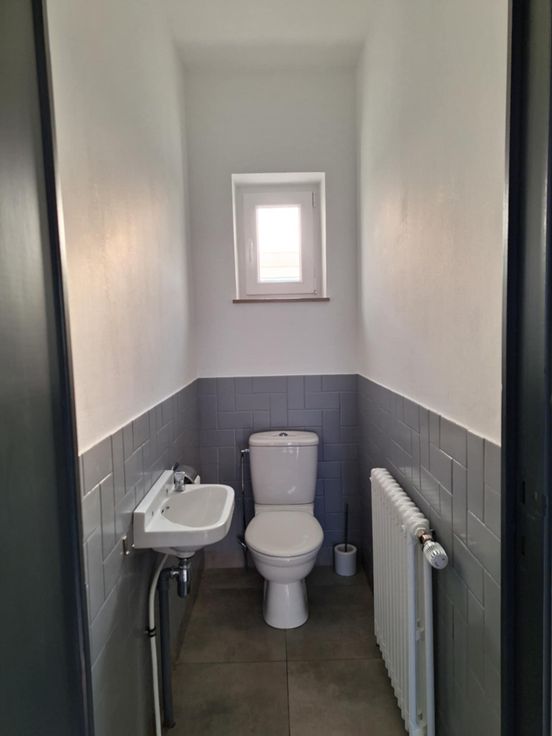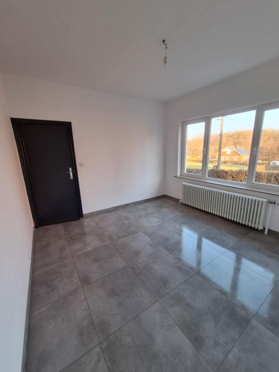 Elle se compose d’un hall d’entrée avec WC séparé, d’un salon salle à manger lumineux, d’une cuisine équipée (taques vitrocéramiques, four, hotte, réfrigérateur et évier) , d’une petite véranda et deux chambres de +/- 16 m².
