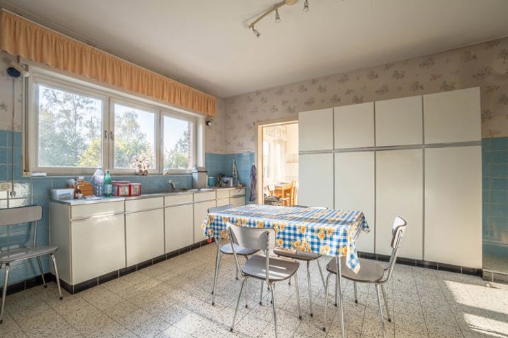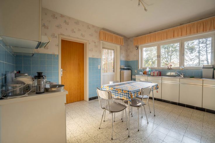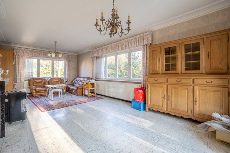 DIVERS: construction traditionnelle (1964), terrasse parfaitement orientée (Sud-Ouest), caves sous toute la maison, grenier de rangement, châssis en bois double vitrage partout (1987), chauffage central au mazout, boiler, tout à l'égout, garage 1 voiture, citerne d'eau de pluie, etc. Remise au goût du jour à prévoir. Très joli potentiel. PEB classé D. plus d'infos et descriptif complet sur www.TRIOR.be