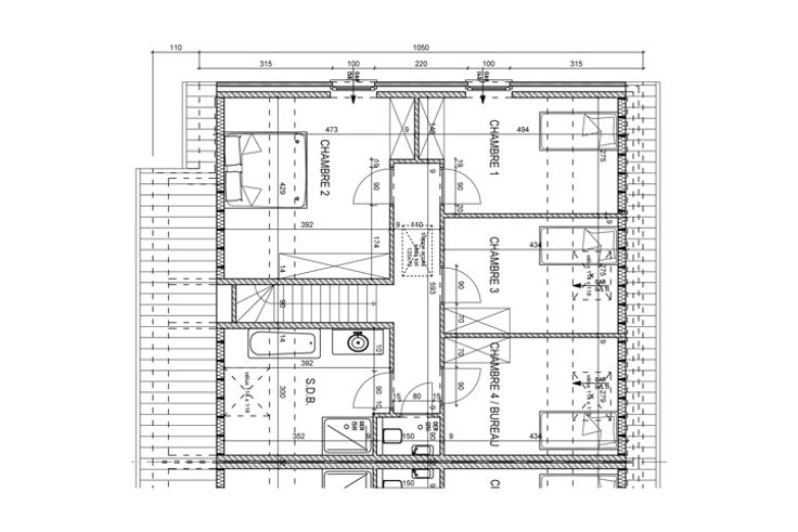 Caractéristiques techniques : châssis PVC gris anthracite double-vitrage et velux dans les chambres et la salle de bain, portes intérieures prêtes à peindre, seuils en pierre bleue, escalier en chêne, chauffage central au gaz de ville, chaudière de marque Vaillant, radiateurs, VMC simple flux de type C+ avec extraction dans les chambres, carrelage au choix avec plinthes assorties pour le rez-de-chaussée et la salle de bain et le hall de nuit à l’étage d'une valeur de 35€/m² HTVA, grès CERAM (30 x 30) d'une valeur de 20€/m² HTVA pour le garage, faïences dans la douche et autour de la baignoire (35€/m² HTVA), revêtement de sol des chambres en option, garage avec porte sectionnelle motorisée, murs séparatifs entre les maisons mitoyennes de 1,50 m sur 1,80 m, citerne de récupération d’eau de pluie de 10.000 litres, pompe non comprise, tuyau Socarex placé, robinet extérieur et gaine pour installation éventuelle de panneaux électriques