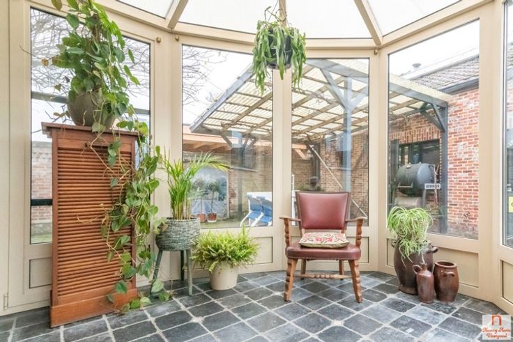 KIJKDAG MA 30/12 (OP AFSPRAAK) Welkom in deze charmante gezinswoning. De warmte van een houtkachel en het overvloedige daglicht doen je meteen een thuisgevoel geven. Aansluitend is er de lichtrijke bureauruimte, die perfect kan dienen als extra slaapkamer of creatieve werkplek. Aan de achterzijde van de woning ligt de uitgeruste keuken. De naastgelegen eetruimte straalt een warme, huiselijke sfeer uit. Praktisch is de aangrenzende wasplaats met extra douchecel. Vanuit deze gezellige leefruimtes stap je zo de veranda in, die naadloos overgaat in een groot, overdekt terras. Op de bovenverdieping bevinden zich drie slaapkamers en een badkamer met ligbad. Eén van de slaapkamers kan gemakkelijk worden opgedeeld in twee kamers. De tuin is een waar paradijs met tuinhuis, serre en een zonneterras. Achter de woning bevindt zich ook een grote, geïsoleerde werkruimte met twee garagepoorten. Deze veelzijdige ruimte is voorzien van alle nutsvoorzieningen. En er is plaats voor 3 wagens onder een carport. De woning is centraal gelegen in een rustige buurt. Op wandelafstand vind je een bos om heerlijk te ontspannen, terwijl winkels en een lagere school zich vlakbij bevinden. Deze sfeervolle woning combineert een warme thuis met een praktische ligging en tal van mogelijkheden. Een plek om je meteen thuis te voelen!
