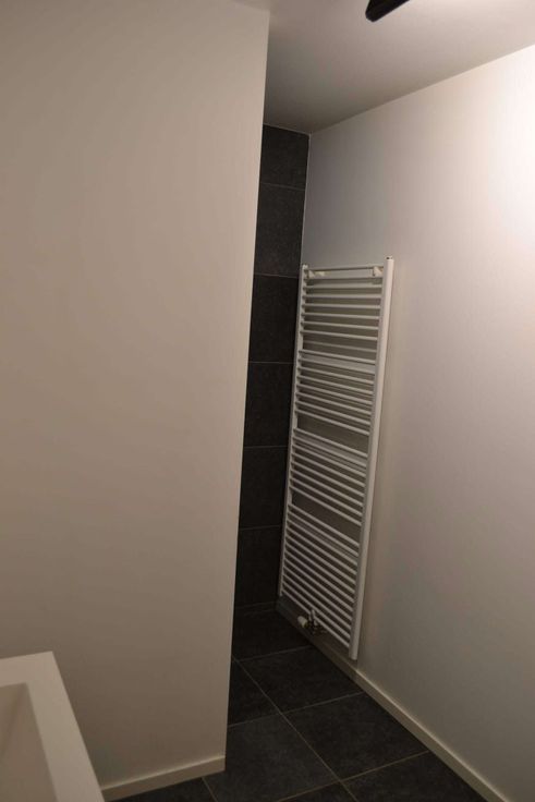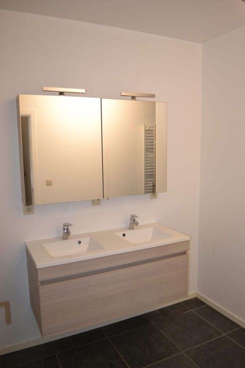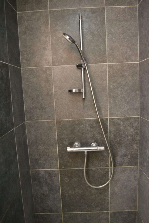 badkamer met grote douche en dubbele lavabo, toilet apart