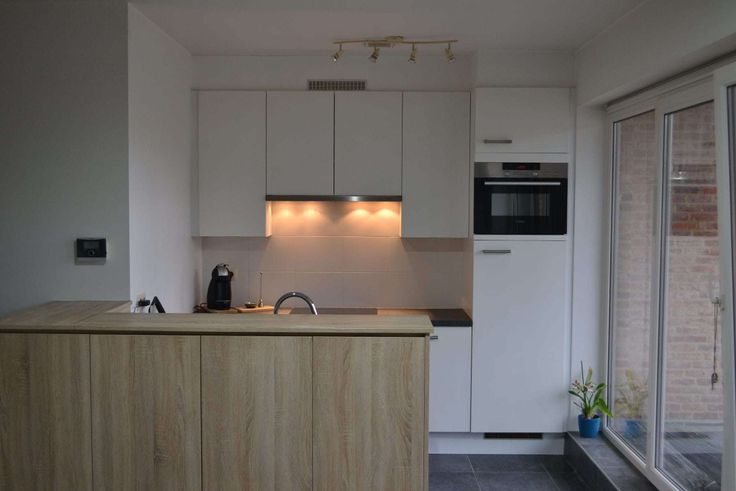 Ruime woonkamer met geïnstalleerde keuken (inductievuur, afwasmachine, koelkast, dampkap)
