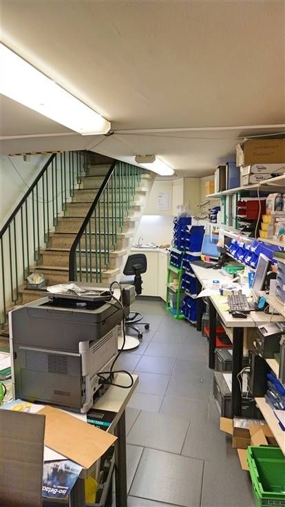 Op de gelijkvloerse verdieping komen we binnen in het winkelgedeelte van de handelszaak met achteraan opslagplaatsen en bureauruimtes. Het handelspand heeft een totale oppervlakte van ca. 122m².