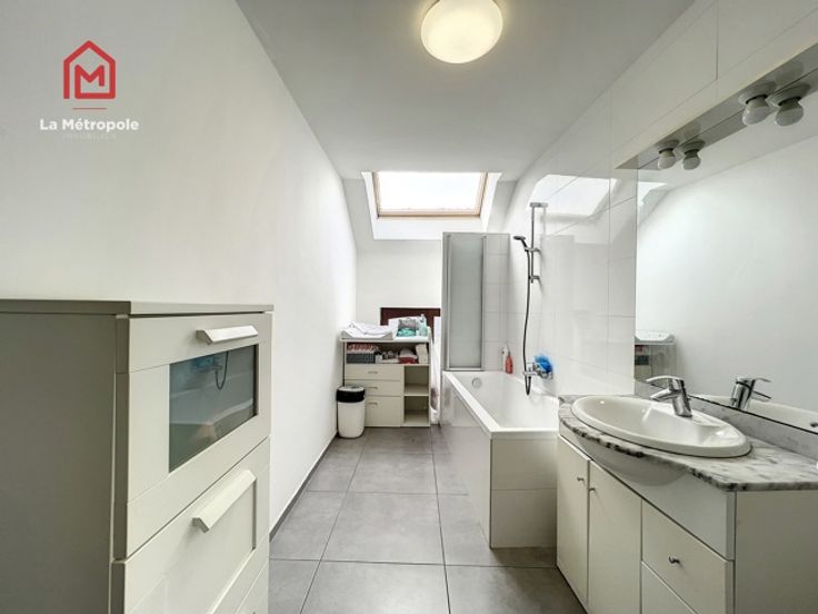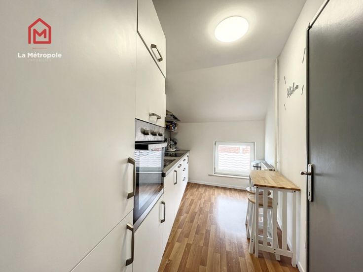 La Métropole Immobilier vous présente à la location ce superbe appartement lumineux 2 chambres. Sa localisation est idéale ; il se trouve à proximité des commodités, des transports en communs et des grands axes ! L'appartement se trouve au deuxième et dernier étage. Celui-ci est composé d'un hall d'entrée ouvert sur le salon ainsi que sur la salle à manger (possibilité de séparer le hall et ces deux pièces via des portes coulissantes). Le bien est également muni d'un débarras, d'une cuisine équipée (frigo, congélateur, taque à induction, hotte, four et lave-vaisselle), de deux chambres spacieuses, d'une salle de bain (baignoire / douche, lavabo simple, WC) ainsi que d'une buanderie avec évacuations pour machine à laver. Aspects techniques du bâtiment : monte charge, parlophone, châssis double vitrage, compteurs individuels, chauffage central gaz (chaudière à condensation Vaillant) PEB : C PRIX : 690€/mois + forfait charges communes 25€/mois Disponible à partir du 1er novembre. Garantie locative de 2 mois. Vous souhaitez plus d'informations ou vous désirez planifier une visite ? N'hésitez pas à prendre contact au 0470/29.12.29 ou au 071/123.950 ou encore par mail : fm@lametropole.be