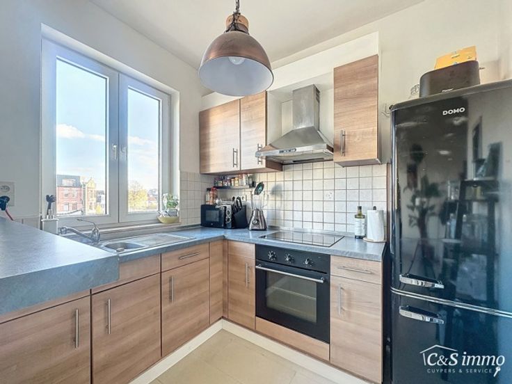 Op de tweede verdieping van een klein gebouw in Merksem vind je dit instapklare appartement. Het beschikt over een lichtrijke woonkamer met een moderne open keuken, voorzien van alle nodige toestellen en opbergruimte. Verder zijn er twee ruime slaapkamers, ideaal als hoofdslaapkamer, kinderkamer of bureau. De badkamer is uitgerust met een douche en een wastafel. Het appartement heeft een praktische indeling en ligt zeer centraal, dichtbij winkels, scholen en openbaar vervoer. Bovendien biedt de nabijheid van belangrijke invalswegen een uitstekende verbinding naar Antwerpen en omliggende gemeenten. Dit is de ideale woning voor starters, gezinnen of investeerders. Interesse? Neem contact op voor meer informatie of een bezoek!