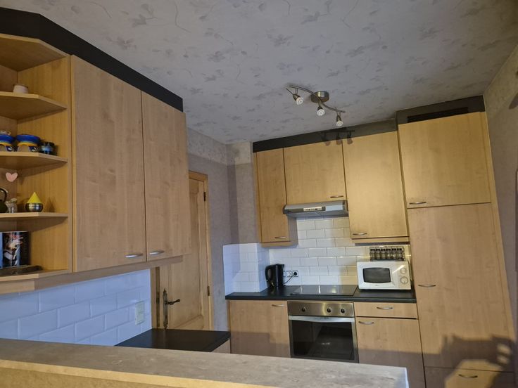Open ingerichte keuken met aparte berging.
