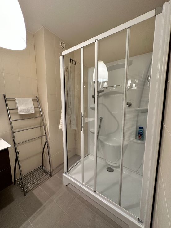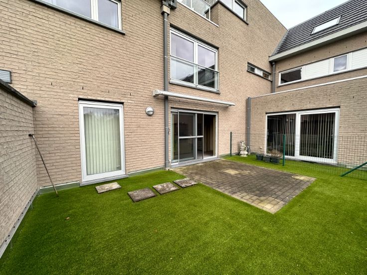 Verder heeft het appartement een terras vooraan en een tuin/terras achteraan, voorzien van een zonneluifel en aangelegd in kunstgras.