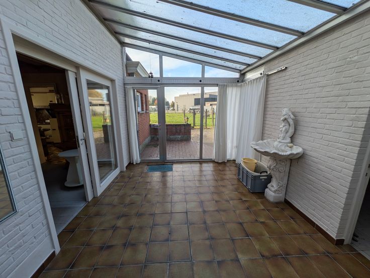 ruime inkomhal, 2x leefruimte, keuken, badkamer, slaapkamer, veranda en garage