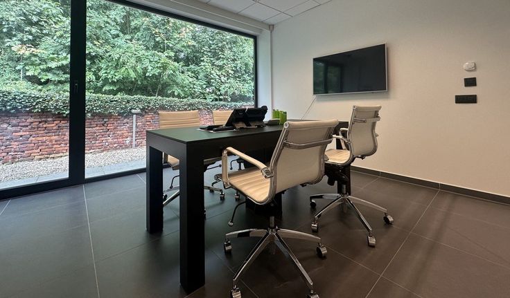 gemeenschappelijke vergaderzalen, EGW, schoonmaak, telefoonpermanentie, mogelijkheid tot huren 6 extra co-working plekken en vergaderzalen 4 à 12 personen, 2 parkings naast de ingang en ruime parking achteraan