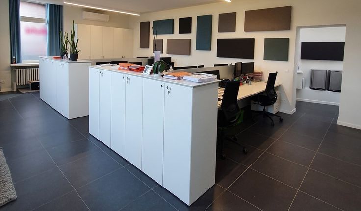 Indeling: landscape ruimte met 4 werkplekken, privatieve kitchenette met toestellen en apart toilet