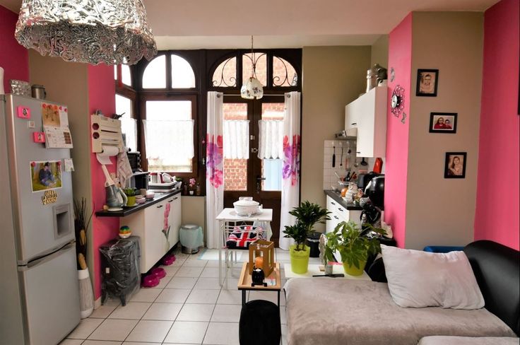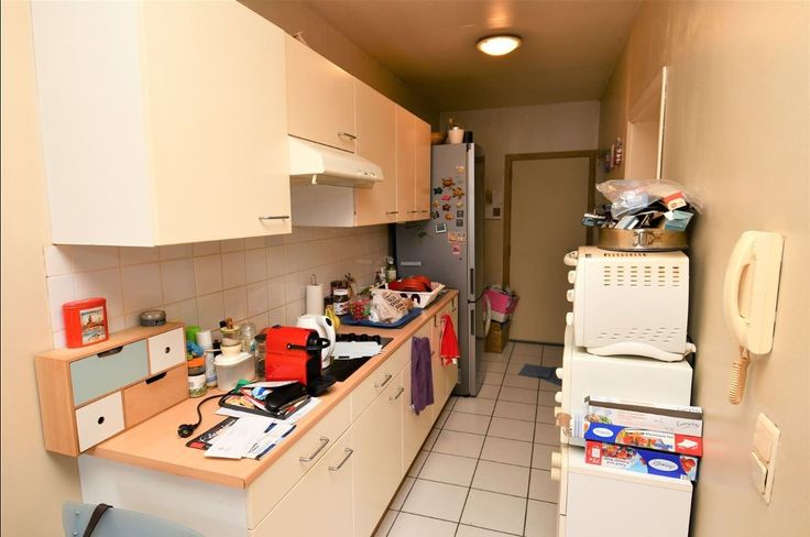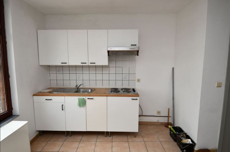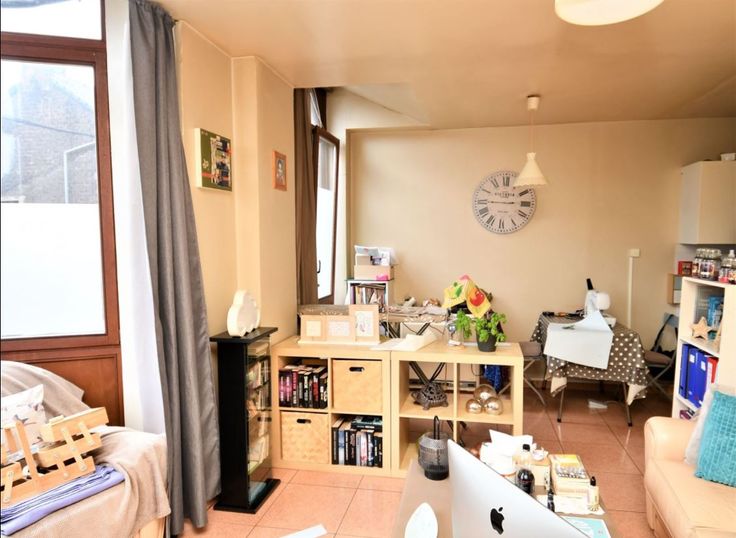 L'appartement 1er étage arrière (45m²) comprend un séjour avec cuisine ouvert (+- 20m²), chambre (7,6m²), bureau / dressing (3,7m²), Salle de bain (4m²). Cet appartement est soumis à permis de location - PEB G