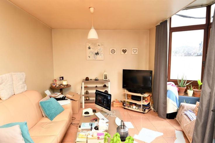 L'appartement 1er étage avant (65m²) comprend un séjour, une cuisine séparée, une chambre (13m²), un bureau ou une chambre (7m²), salle de bain (5m²) - PEB E