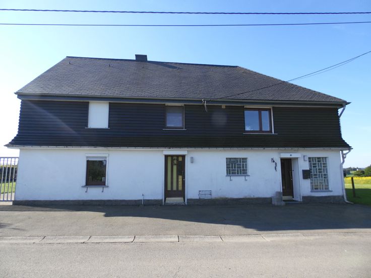 Heel rustig gelegen vrijstaand huis met veel potentieel met grote, vlakke tuin aan het eind van de bouwzone in een doodlopende straat richting bos (geen doorgaand verkeer) in een prachtige streek (Belgische Eifel).