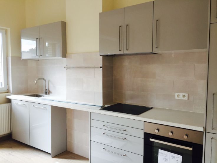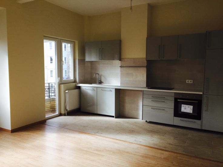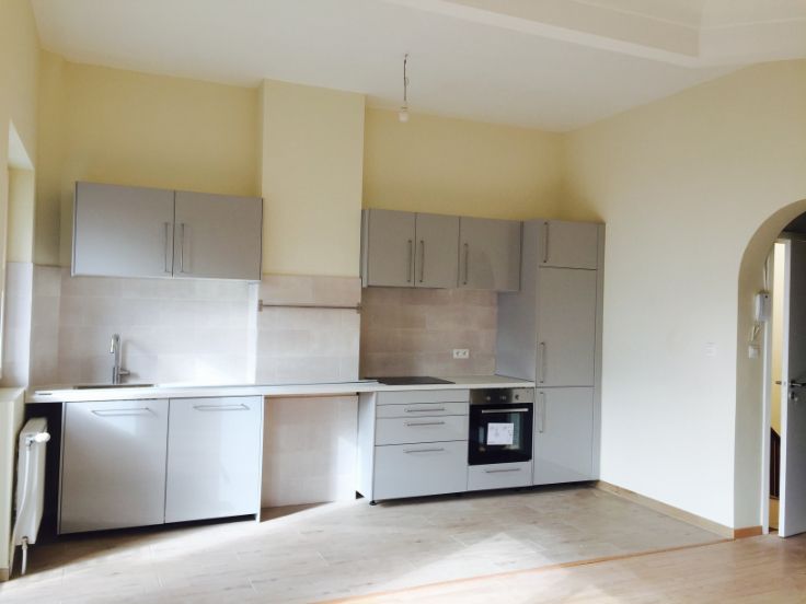 1 grand living avec cuisine ouverte equipee: four, frigo, surgélateur, taques induction, hotte, lave-vaisselle